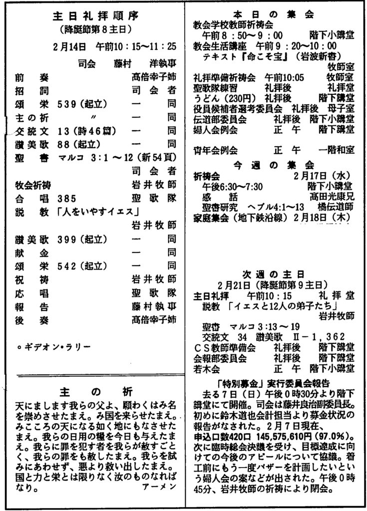 1993年2月14日 降誕節第8主日、神戸教会週報所収、