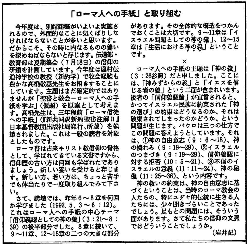 さて、講壇では、昨年6章〜8章を何回か学びました(1992.5.3-6.12)。