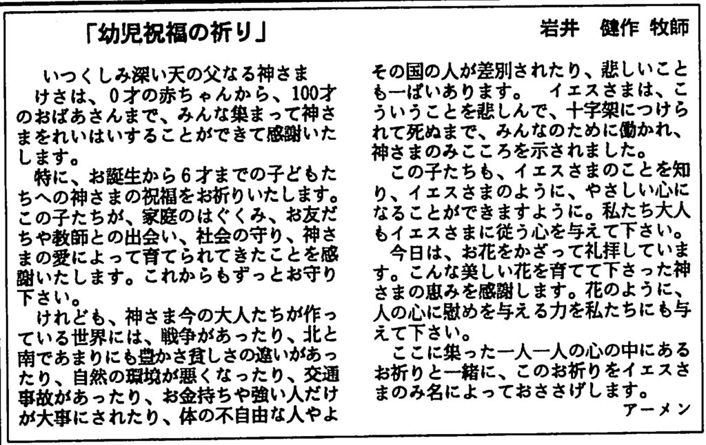 特に、お誕生から6歳までの子どもたちへの神さまの祝福をお祈りいたします。
