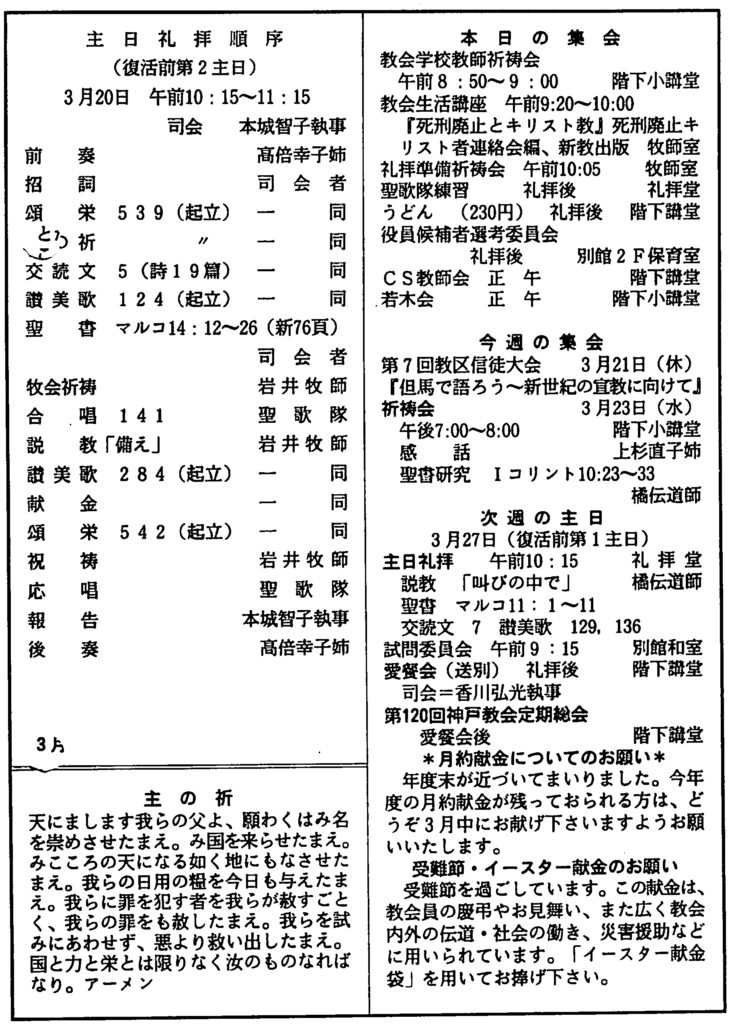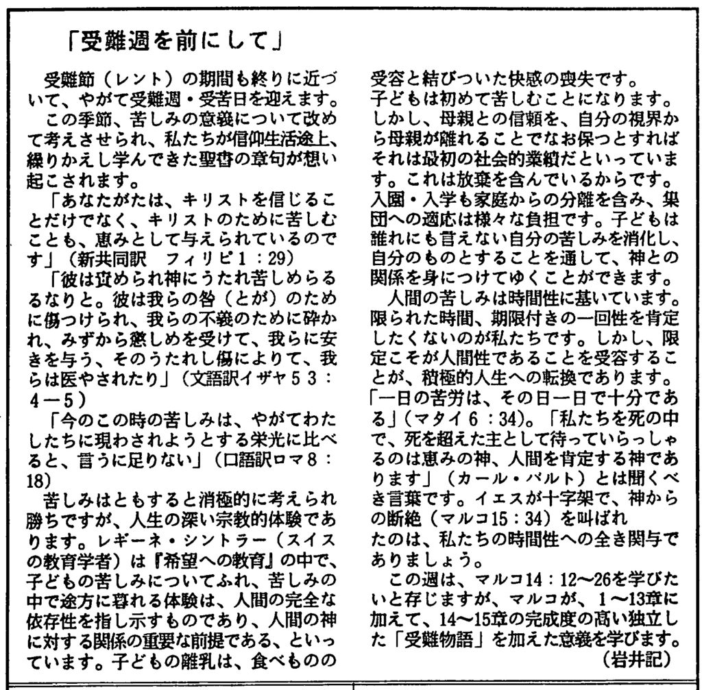 (1994年3月20日 神戸教会週報 岩井健作)