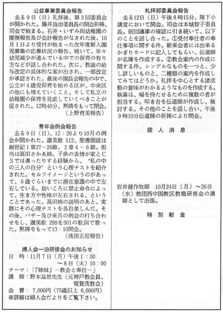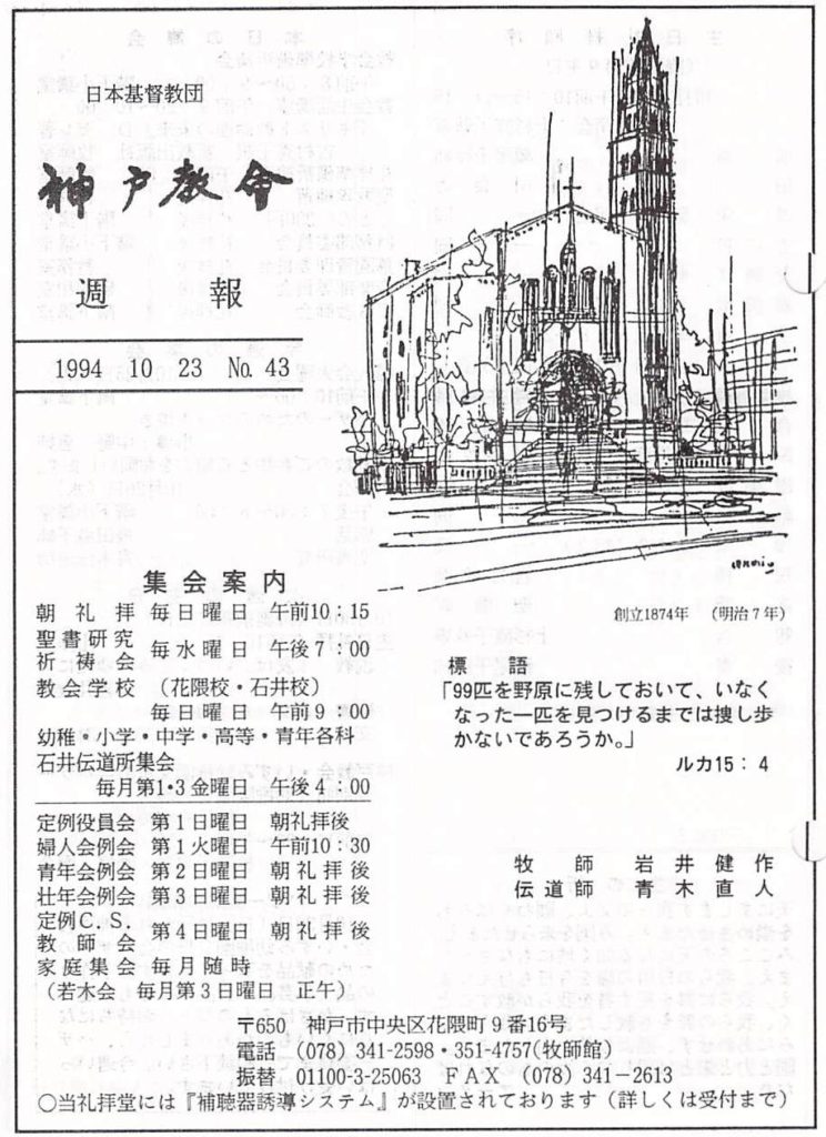 (1994年10月23日 神戸教会週報 岩井健作記)