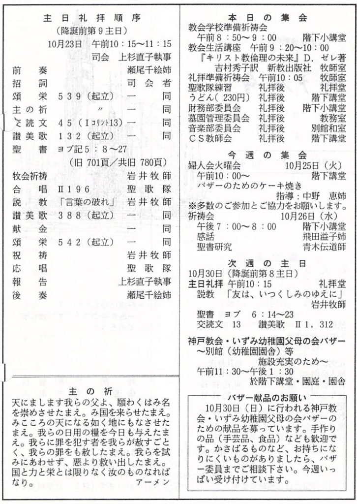 1994.10.23、神戸教会週報、降誕前第9主日