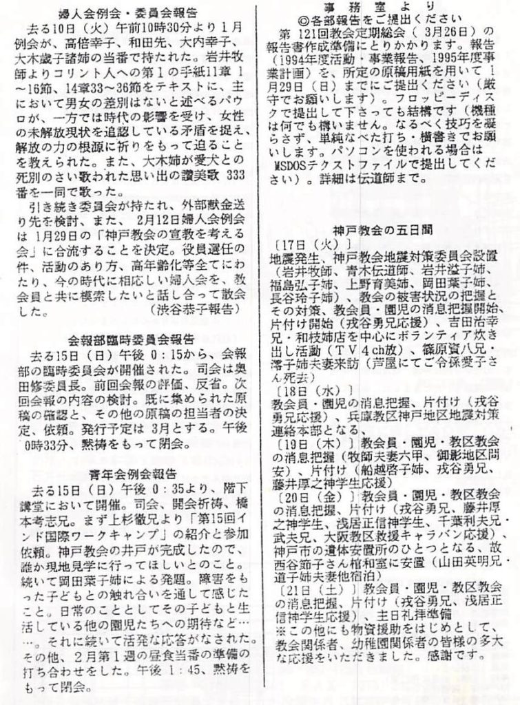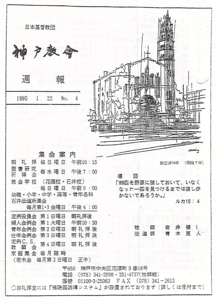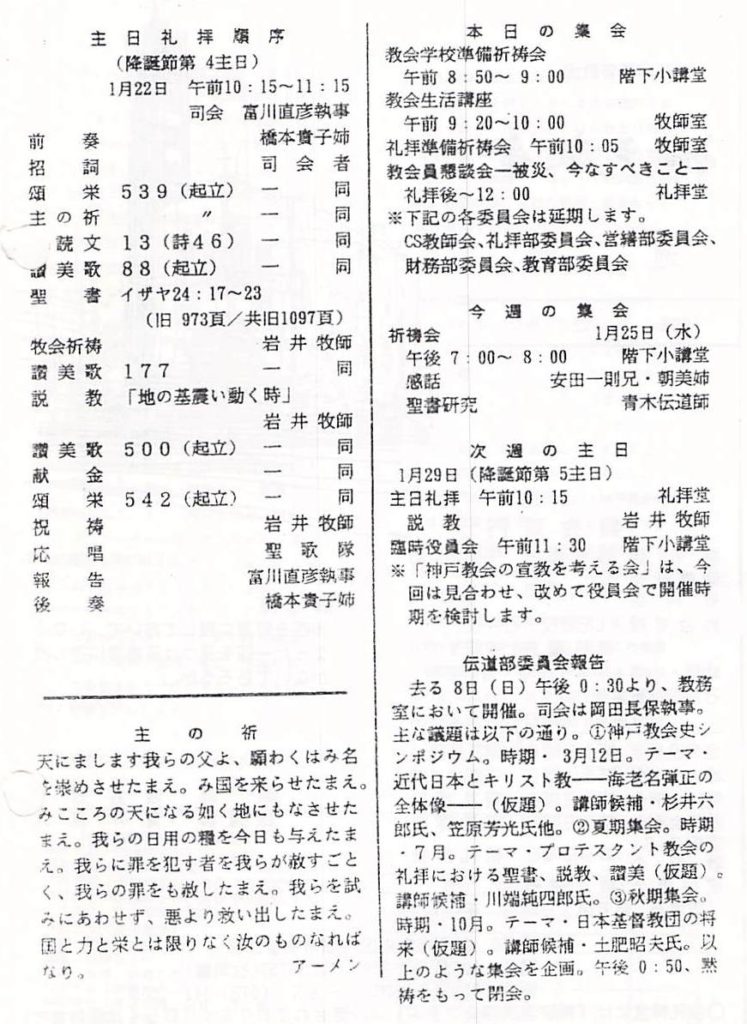 1995年1月22日、降誕節第4主日、神戸教会週報