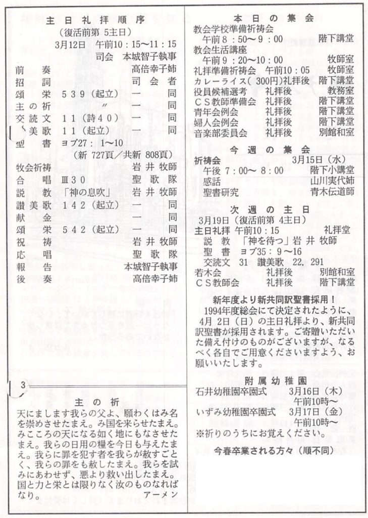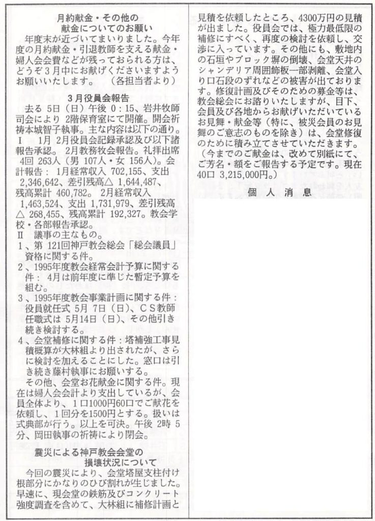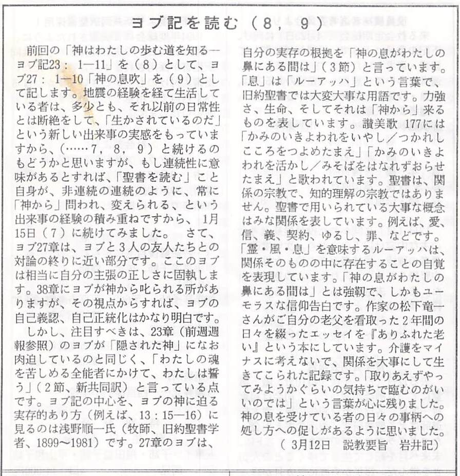(1995年3月12日 神戸教会説教要旨 岩井健作)