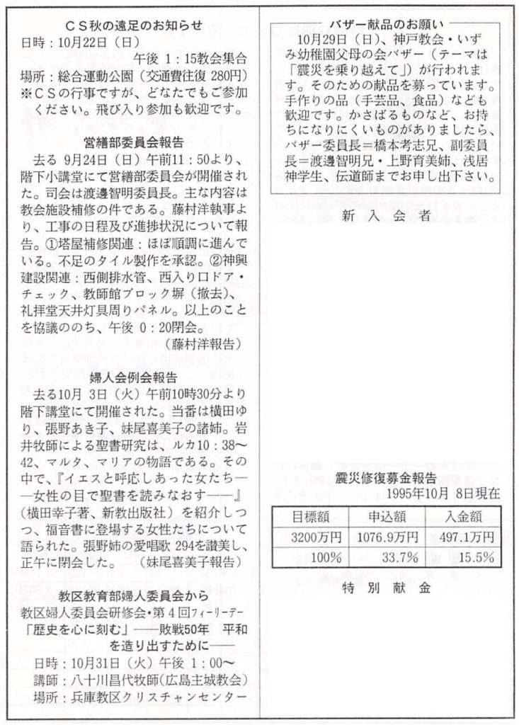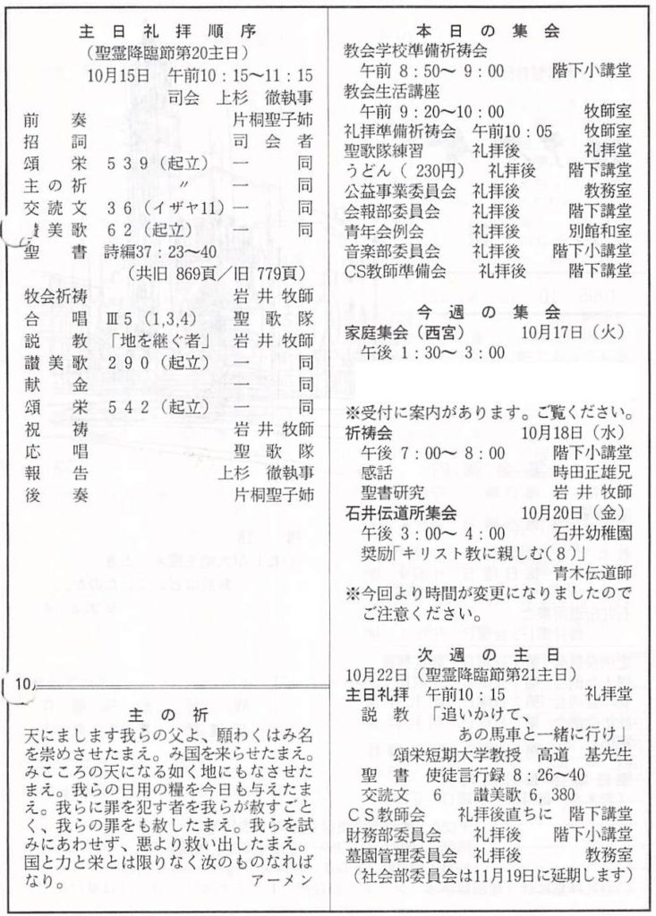 1995.10.15、神戸教会週報、聖霊降臨節第20主日