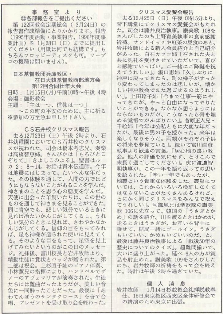(1996年1月7日 神戸教会週報 署名なし)