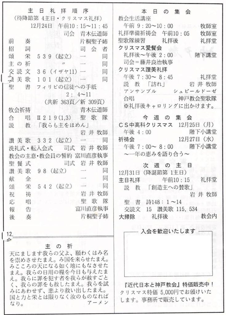 (1995年12月24日 神戸教会週報 岩井健作)