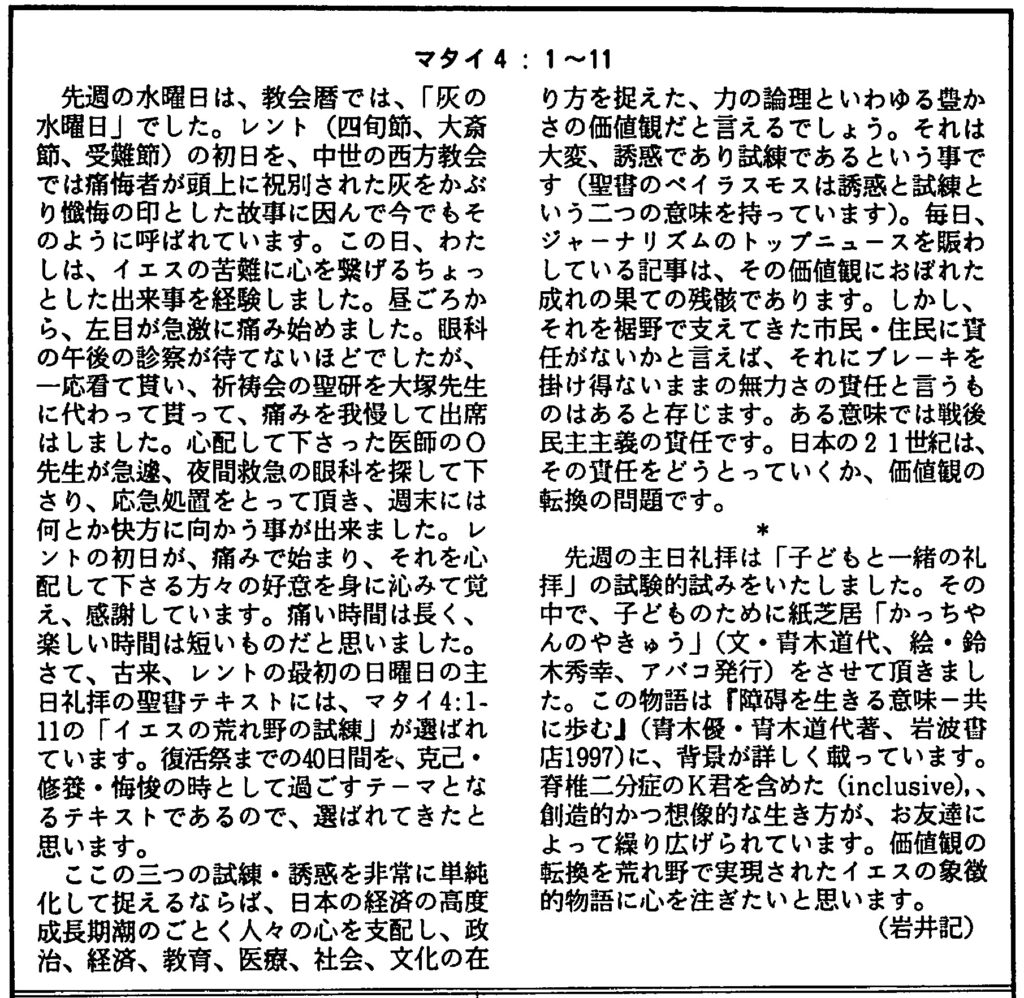 さて、古来、レントの最初の日曜日の主日礼拝の聖書テキストには、マタイ福音書4章1-11節の「イエスの荒れ野の試練」が選ばれています。