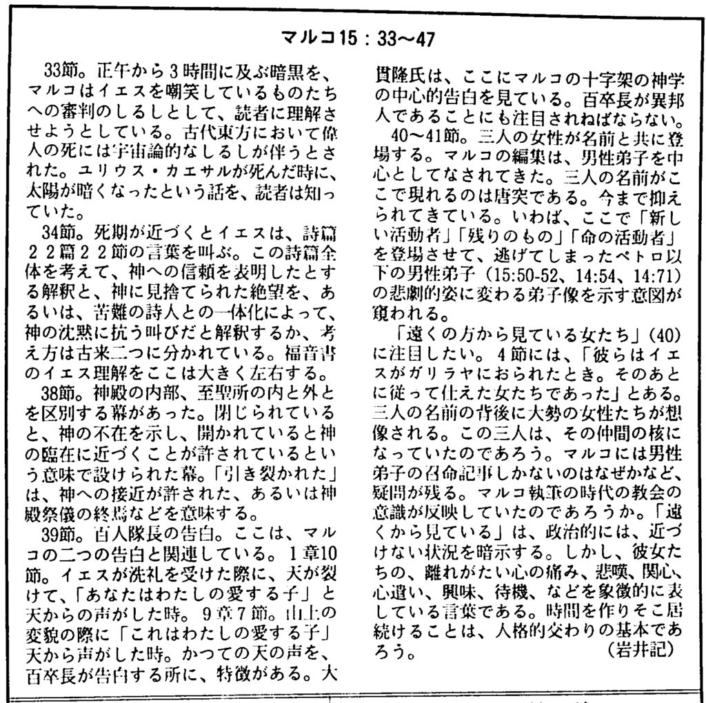 マルコ 15:33-47、説教題「十字架を囲む人々」