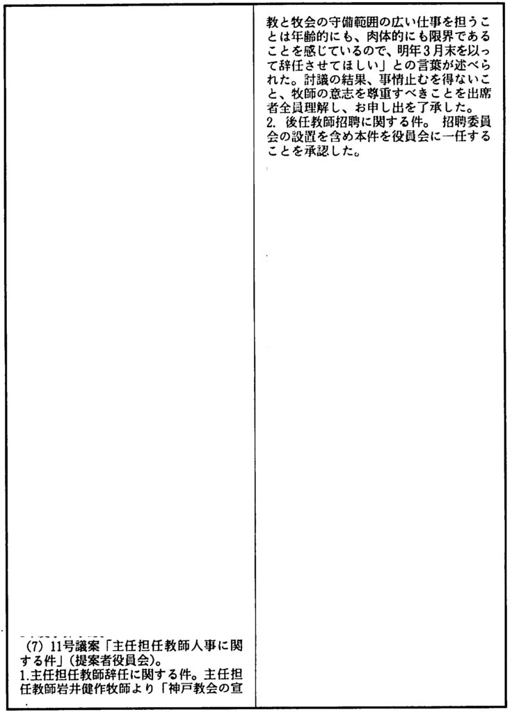 (牧会43年、神戸教会牧師 23年目、健作さん67歳)