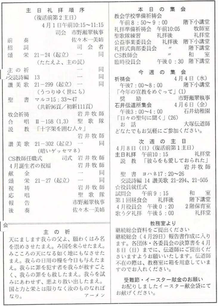 2001.4.1、 神戸教会週報、復活前第2主日