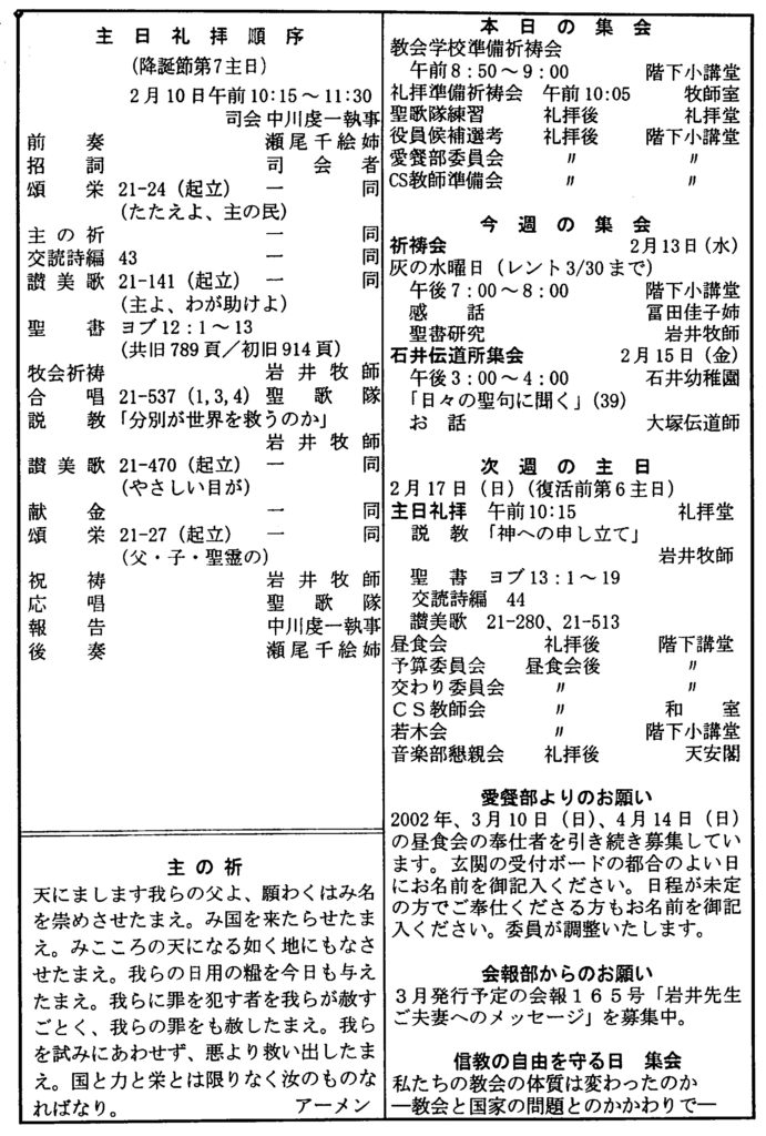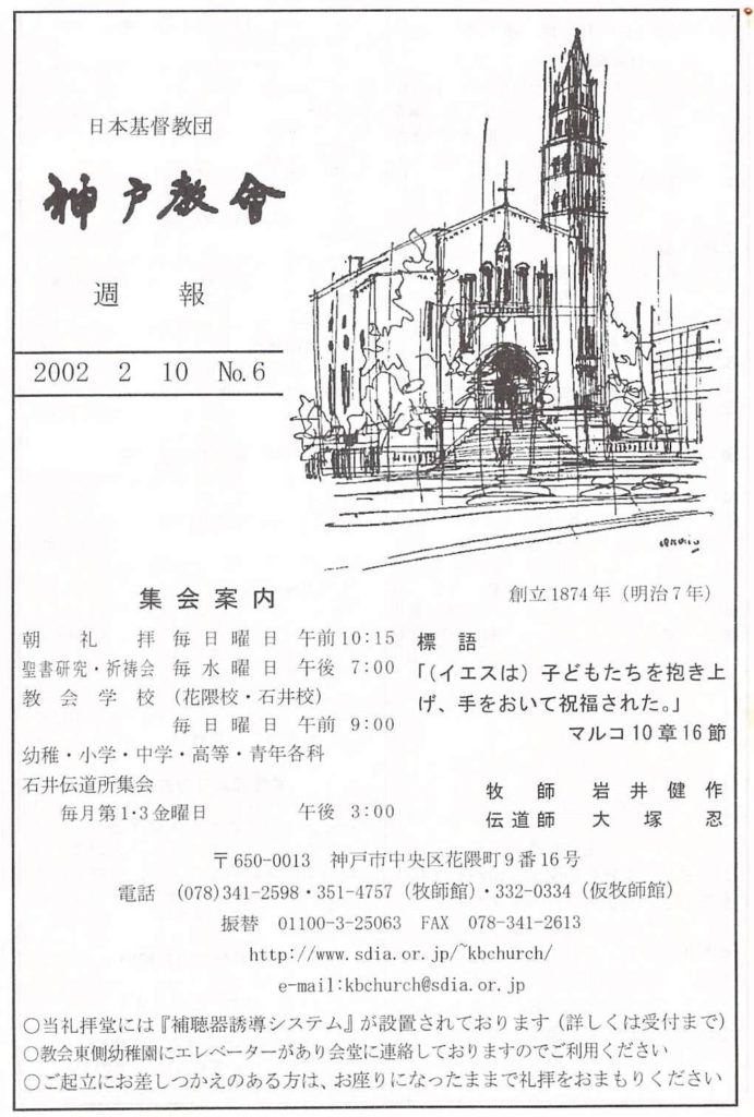 2002.2.10、 神戸教会、神戸教会週報、降誕節第七主日