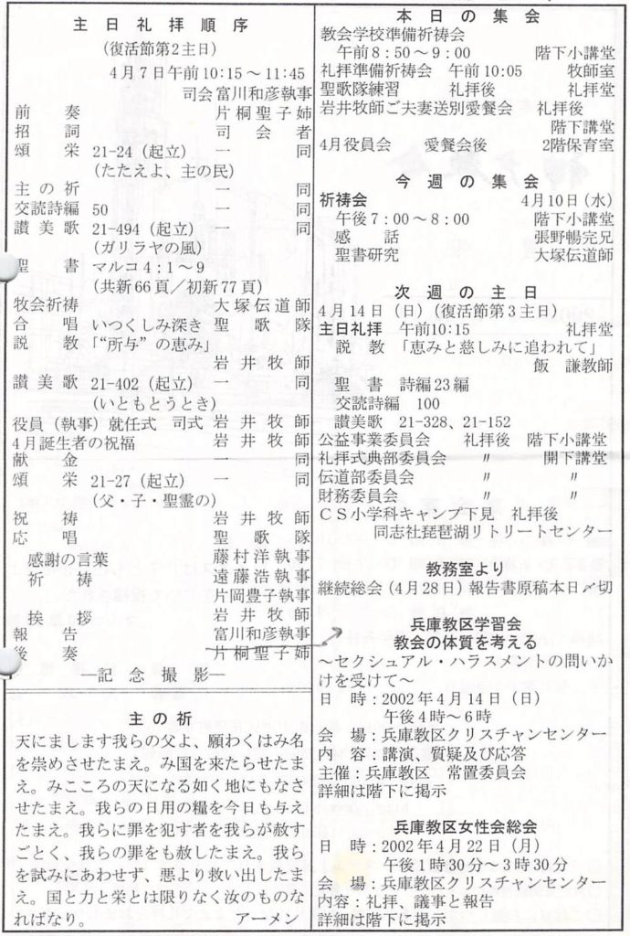 2002.4.7、 神戸教会、神戸教会週報、復活節 ②