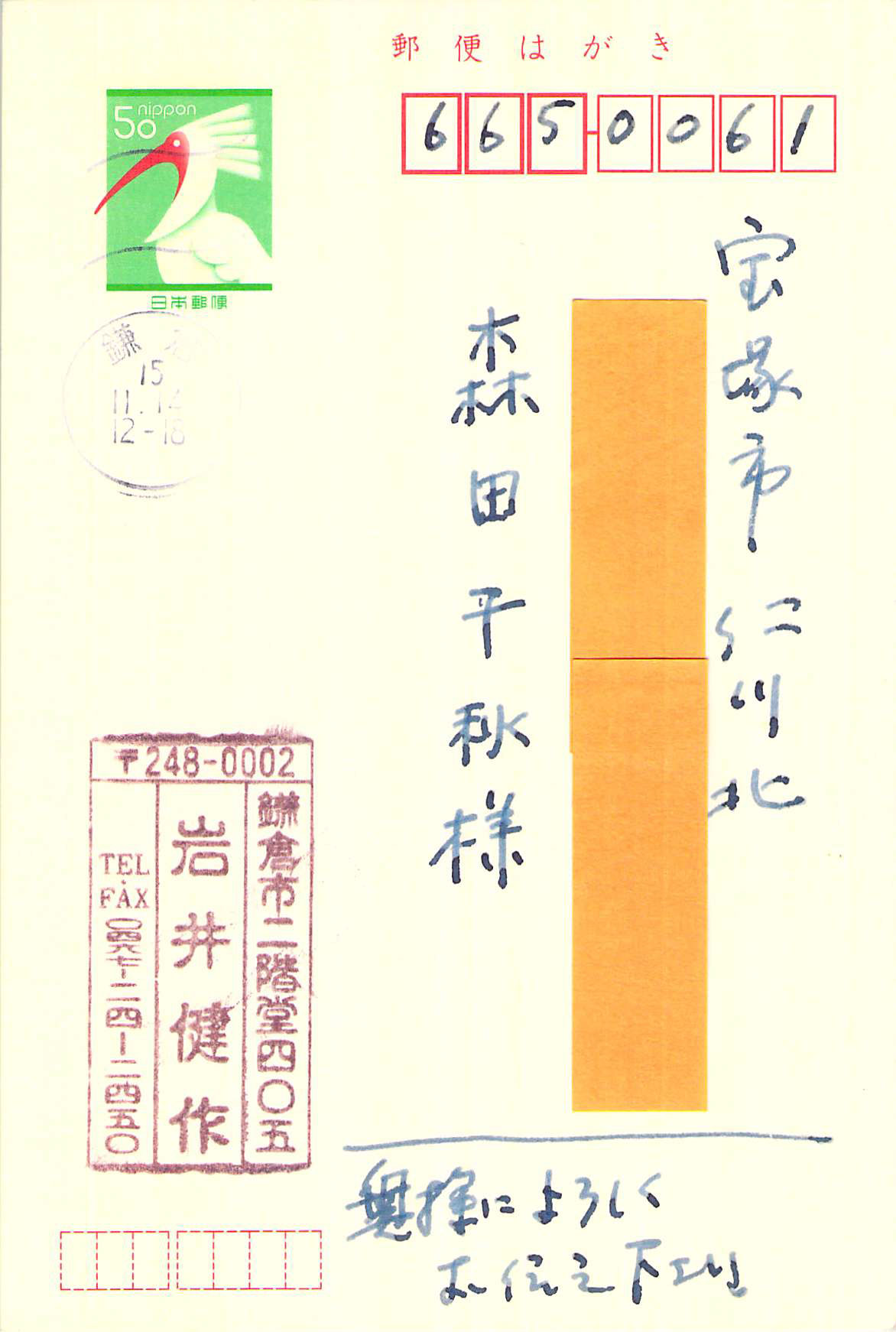投稿日: 2003-11-132020-01-10 投稿者: 管理者書簡(2003 11月 ②) 2003.11.13、森田千秋さん(神戸教会員)宛 川和教会代務者牧師(2002.7-)、健作さん70歳 書簡インデックスに戻る 次のハガキ