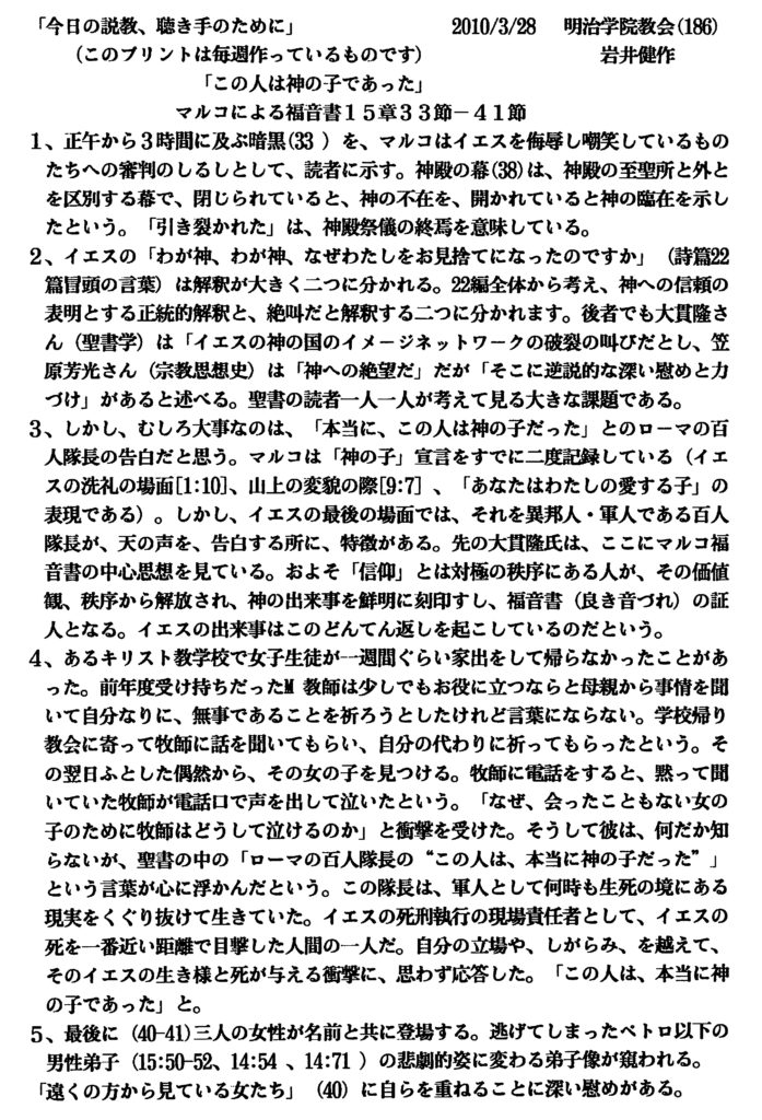3.しかし、むしろ大事なのは「本当に、この人は神の子だった」とのローマの百人隊長の告白だと思う。