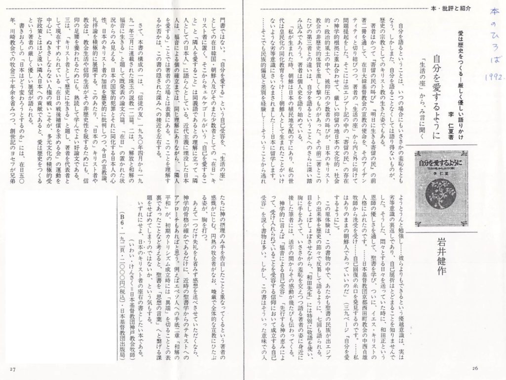 「本のひろば」42号 1992年1月号掲載(キリスト教文書センター)